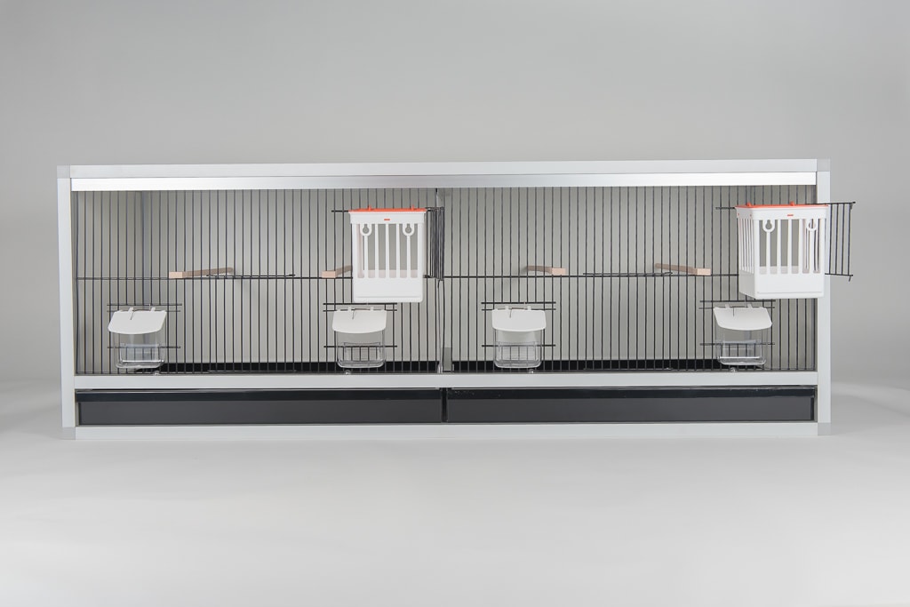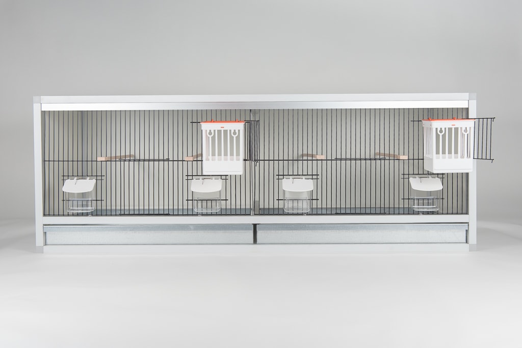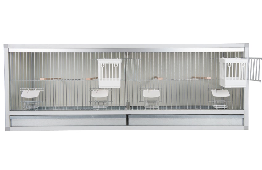 Aluminium broedkooi 120 cm breed 2 vakken met traliesnestkasten