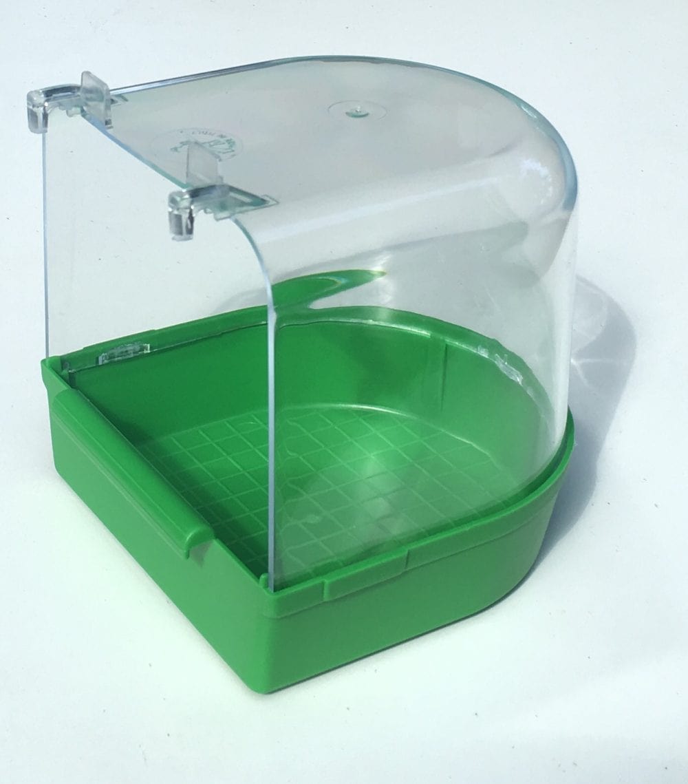 Badhuis groot met groene onderkant, kan aan praktisch elke kooi gehangen worden. O.a. te bevestigen in een schuifdeur van een voorfront.