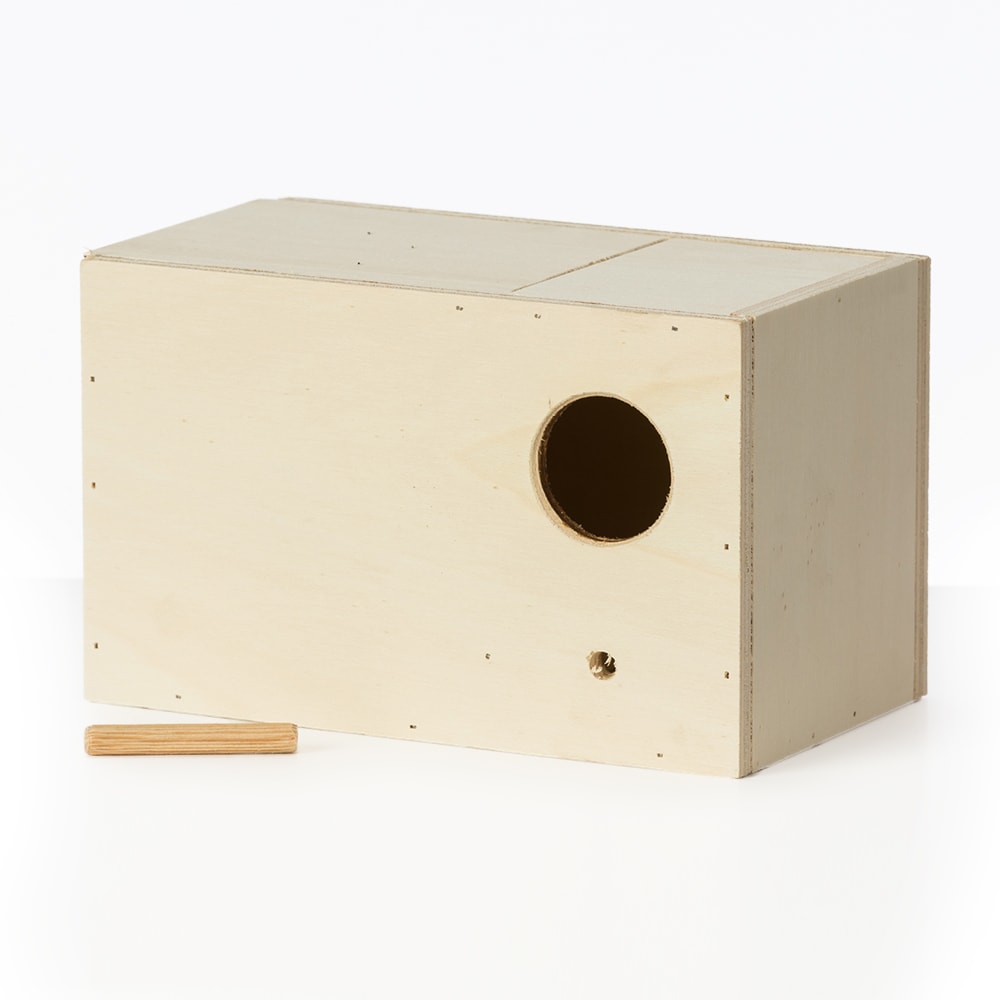De bovenkant draait omhoog, waardoor nestinspectie gemakkelijk uit te voeren is. Keuze voor invlieggat, links of rechts.