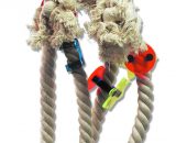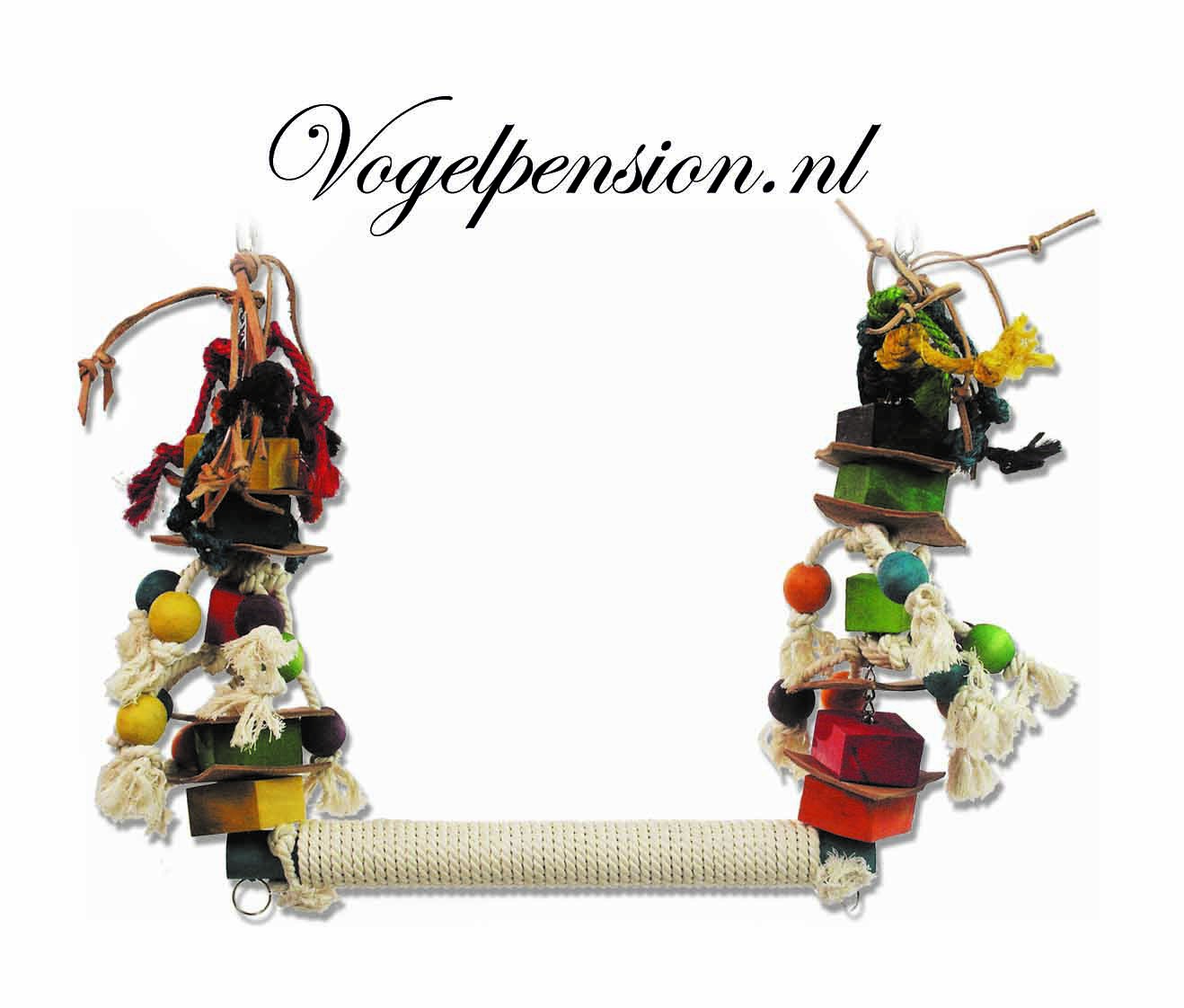 De Happy Bird DeLuxe Swing in Large is een luxe schommel voor grijze roodstaarten, amazonen en vergelijkbare papegaaien. Een bont hangend speelgoed voor zitten, schommelen en klimmen. Zeer veelzijdig.