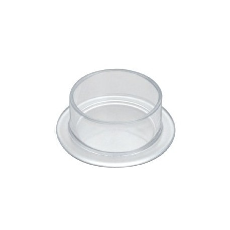Doorzichtige ronde voerbak met voet met een hoogte van 3,5 cm en een diameter van 7 cm.