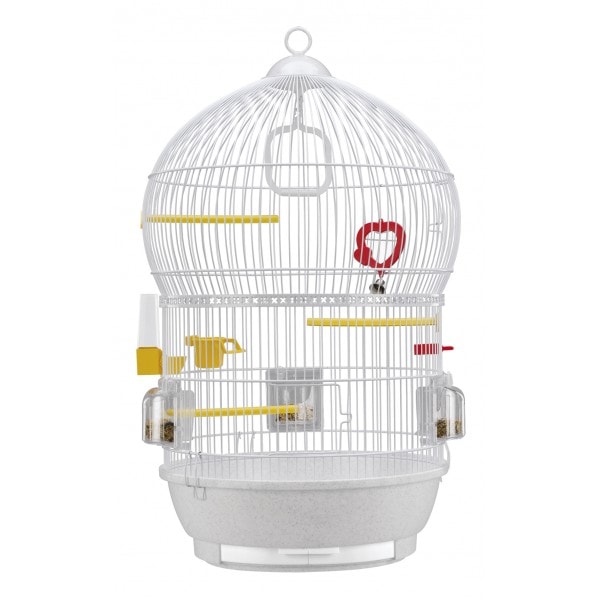 Ferplast Bali vogelkooi is een middelgrote, ronde kooi voor kanaries, exotische vogels en kleine vogels. Door de verwijderbare onderkant is het zeer gemakkelijk om de kooi schoon te maken. De kooi word geleverd inclusief de bijbehorende accessoires zoals: schommel, spiegel met speeltje en belletje, plastic zitstok, drinkbus, levensmiddelclip, en een voerbakje.