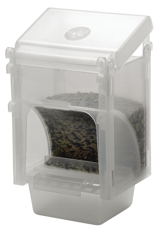 Kunststof voedersilo / voersilo geschikt voor 250 gram. Past in de schuifdeur van het voorfront maar ook op de plaats van het klepje. Klepje en veertje verwijderen.