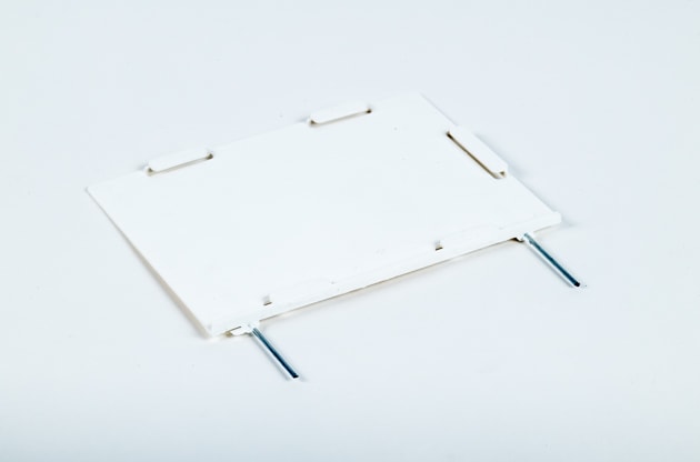 Kweekkaarthouder met draad waarvan de pinnen om te buigen zijn en daarmee haken te vormen zijn.