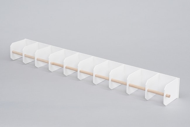 Totale breedte 101 cm, 10 cm hoog, lengte 13 cm. Ruimte per vak: 9,5 cm breed