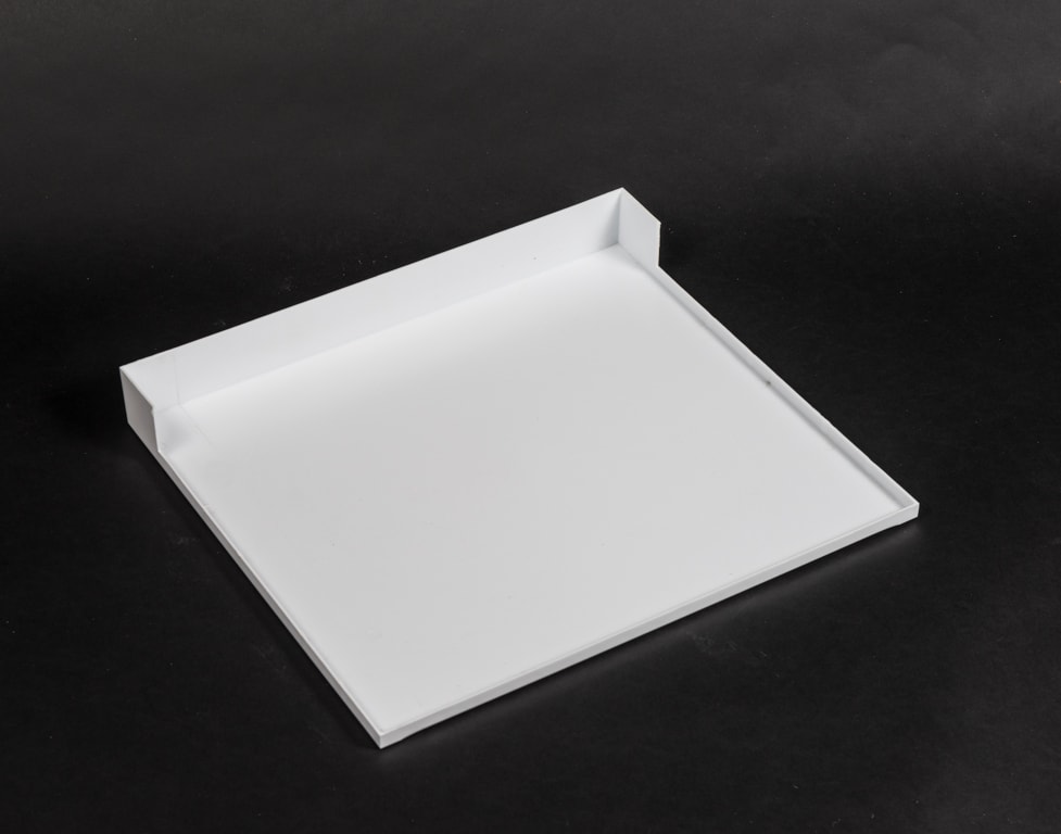 Afmetingen: 40 cm breed, 35 cm diep en zijkanten en achterkant 1,7 cm hoog. Voorkant 5 cm hoog