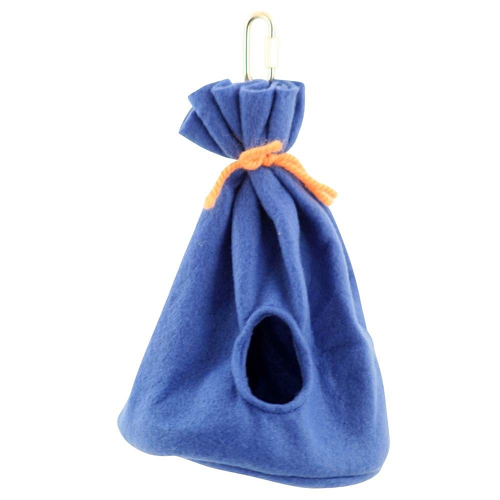 Slaapzak voor vogels van fleece waarin de vogel af en toe eens heerlijk weg kan kruipen en uiteraard de nacht in doorbrengen.