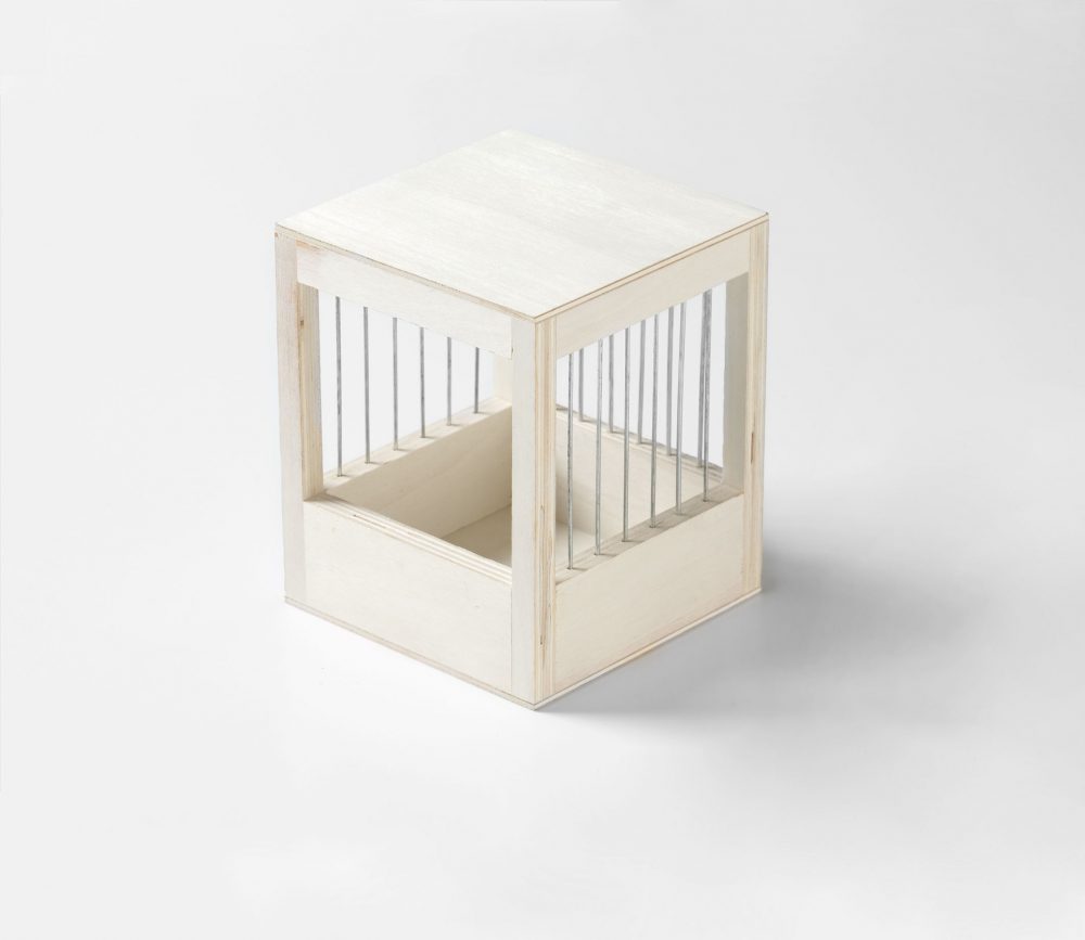 Traliesnestkast groot gemaakt van hout en metalen spijlen geheel verlijmd en daardoor geen kieren/naden.