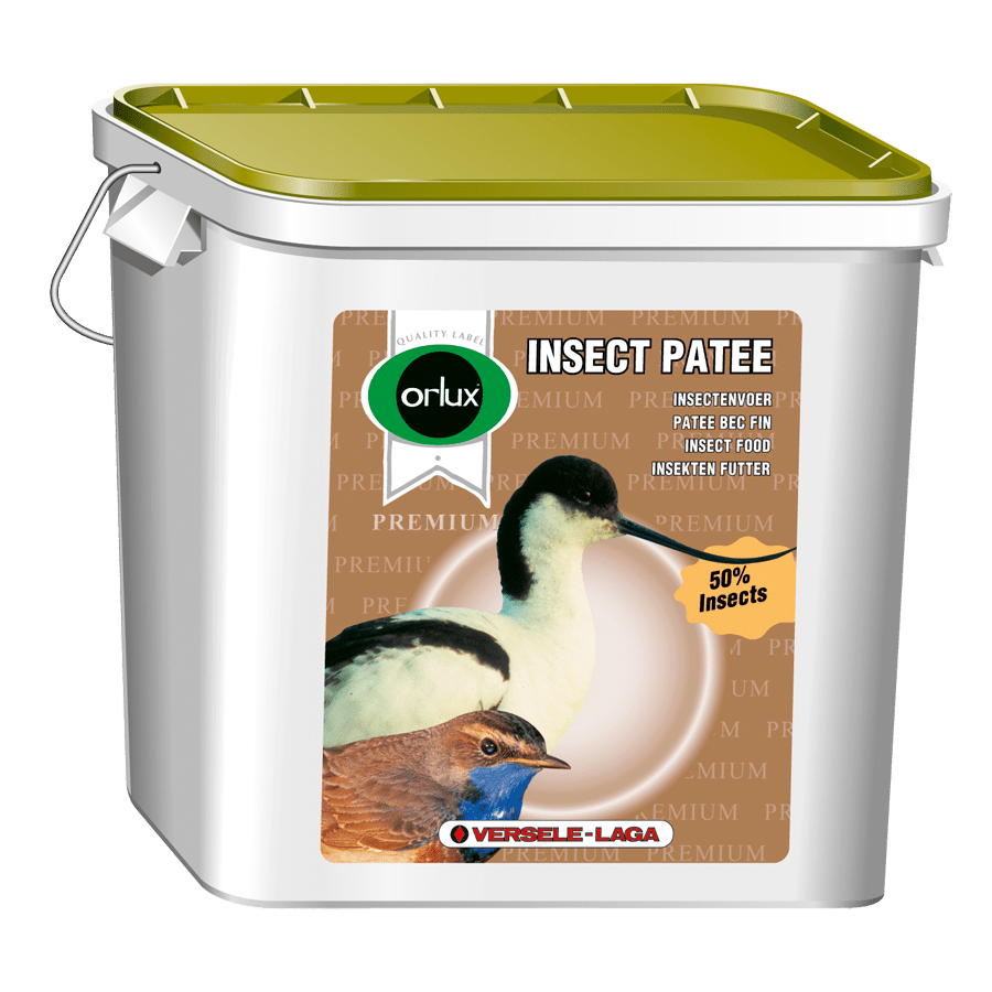 Orlux Insect patee Premium is een volledig voeder voor alle insectenetende vogels. Daarmaast is het een ideale bijvoeding voor tropische vogels, wildzang, kleine en grote parkieten, papegaaien, vijgpapegaaien en lori’s. Insect patee Premium is zeer rijk aan dierlijke eiwitten en aan gedroogde insecten, miereneieren, Mexicaanse larven. Minimum 50 % insecten. Door het hoge gehalte gedroogde insecten is dit voeder uitermate geschikt voor de kweek van inlandse vogels. Hoge voedingswaarde en een zeer goede opname.