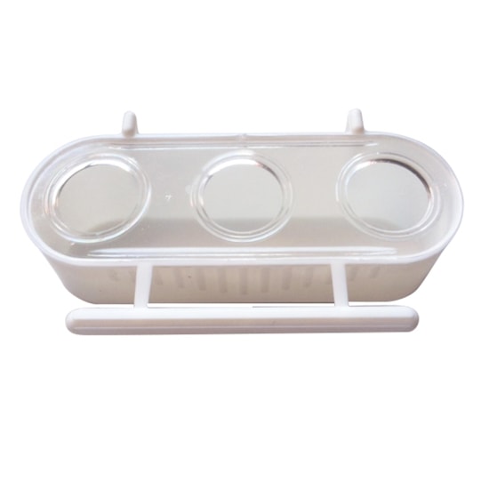 Voerbakje met 3 gaten, doorzichtig kunststof met zitstok.