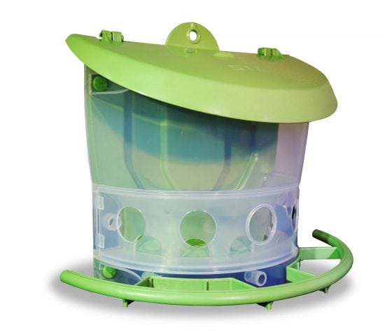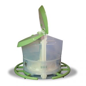 Ideale kunststof voersilo met 5 gaten voor vogels zoals tropen, exoten, wildzang en kanaries voor in bijvoorbeeld een volière of nachthok.