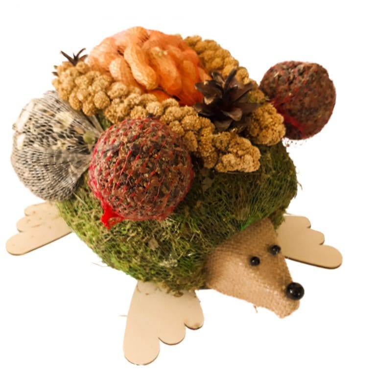 Met deze voederegel tover je een lach bij iedereen op het gezicht. Deze egel is gemaakt van berkenhout uit de bossen en is voorzien van mos en takjes. Dit kunnen de vogels later weer gebruiken als nestmateriaal.